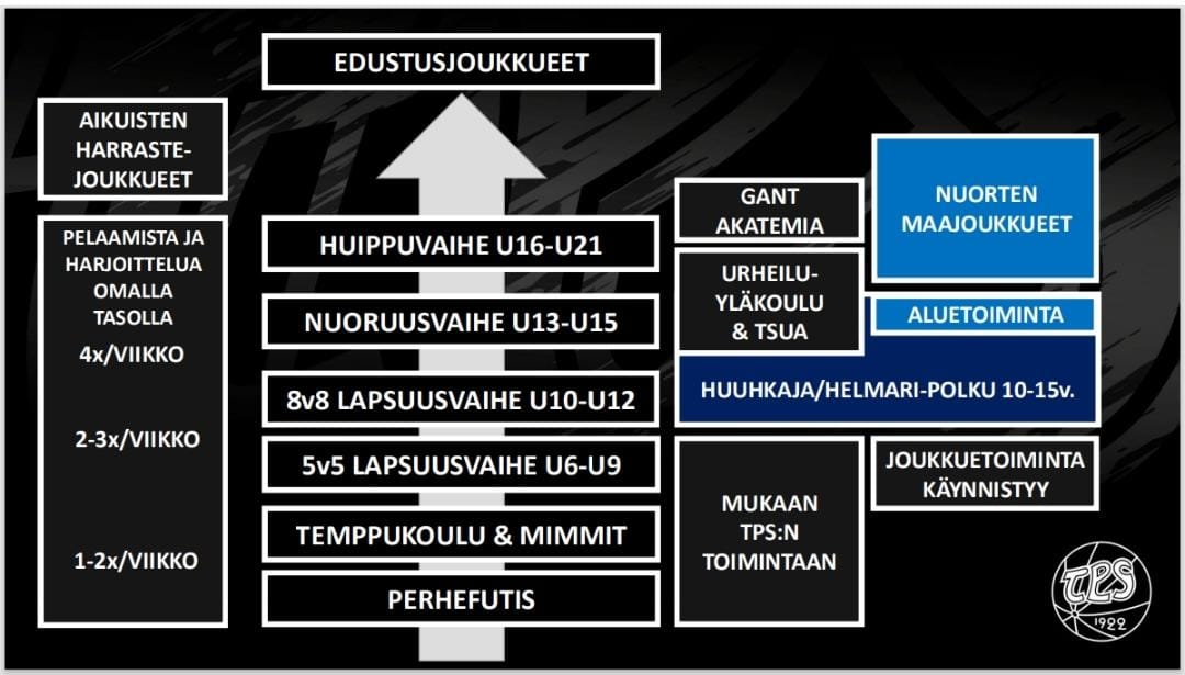 TPS tarjoaa ”pelaajaputken”, joka alkaa Perhefutiksesta ja jatkuu aina edustusjoukkuetasolle saakka.