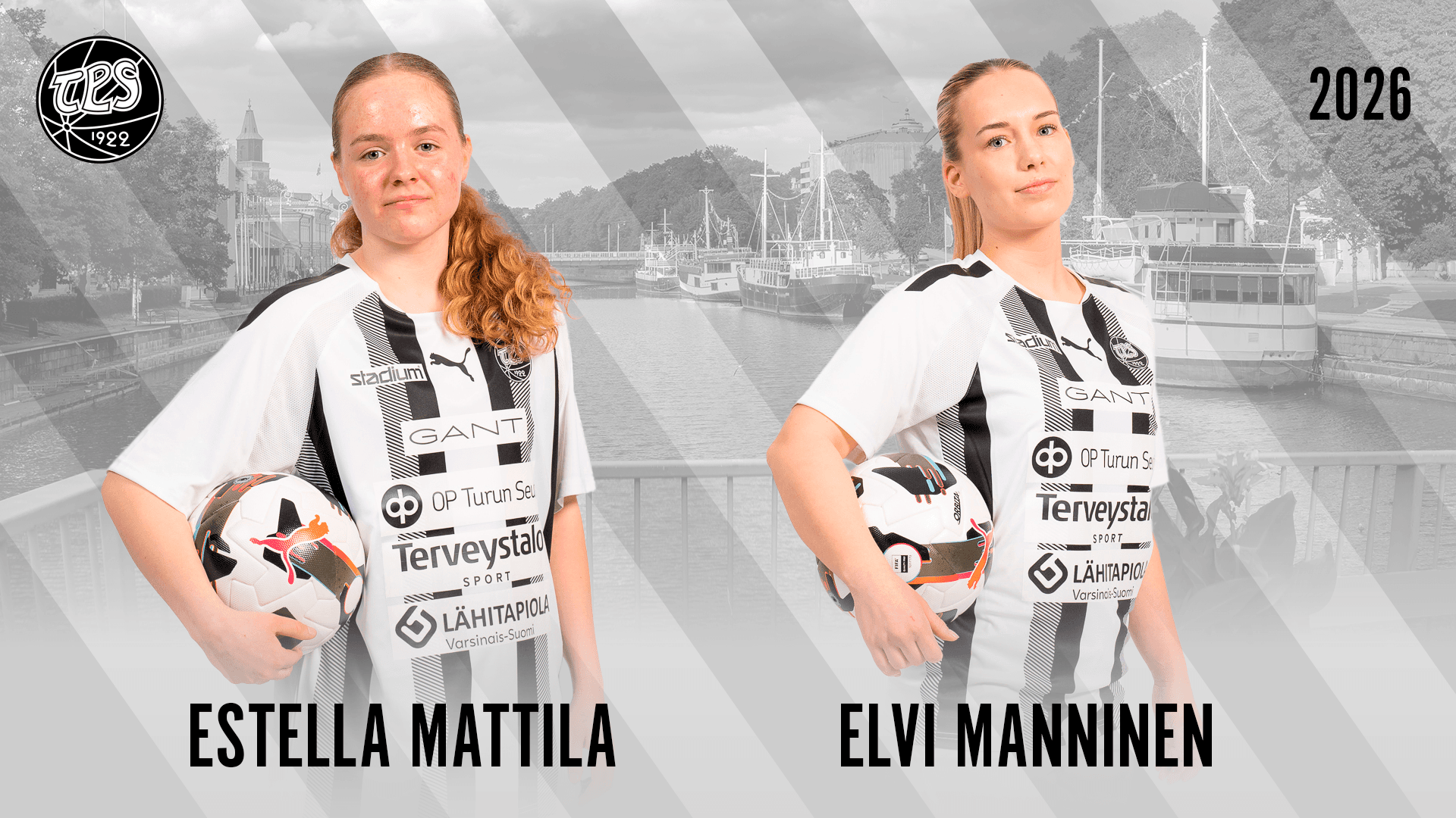 Turun Palloseura on kiinnittänyt Estella Mattilan ja Elvi Mannisen yksivuotisiin jatkosopimuksiin. Molemmilla pelaajilla on takanaan ensimmäinen kautensa TPS:n edustusjoukkueessa. Manninen, 20, ja Mattila, 17, ovat molemmat monipuolisia pelaajia, jotka pystyvät pelaamaan niin keskikentällä kuin keskuspuolustajinakin.