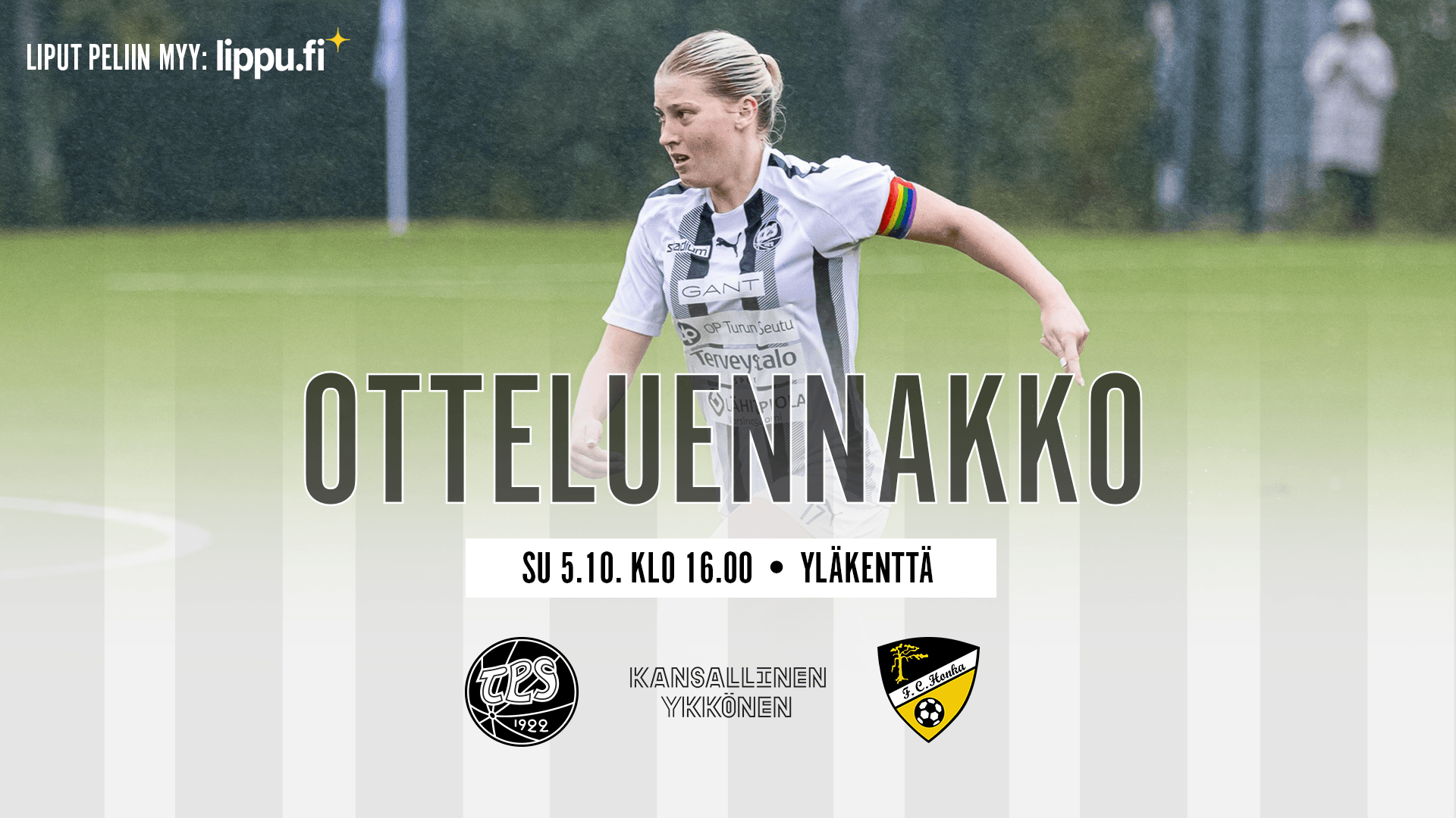 Jalkapallon naisten Kansallisen Ykkösen karsintasarja jatkuu tänään sunnuntaina Turussa, kun TPS kohtaa kotiottelussa FC Hongan. Ottelu potkaistaan käyntiin Turun Urheilupuiston Yläkentällä kello 16.00. Ennakon peliin tarjoaa TPS Jalkapallon yhteistyökumppani Lippu.fi. Osta liput otteluun näppärästi Lippu.fin verkkokaupasta.