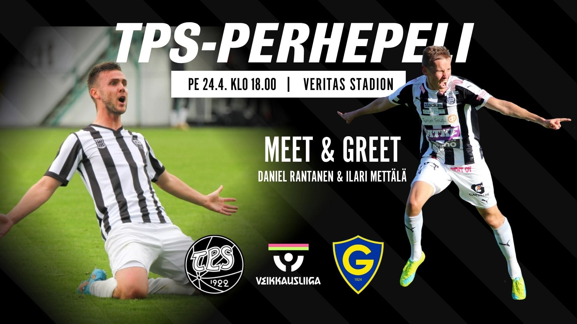Turun Palloseuran loistavasti alkanut taival Veikkausliigassa jatkuu perjantaina 24.4. kello 18.00 kotona Kupittaalla, kun Tepsi kohtaa IF Gnistanin. Otteluun oman lisämausteensa tuovat entiset TPS-pelaajat Ilari Mettälä ja Daniel Rantanen, jotka ovat tavattavissa meet & greet -tilaisuudessa ennen illan Veikkausliiga-ottelua Veritas Stadionilla.