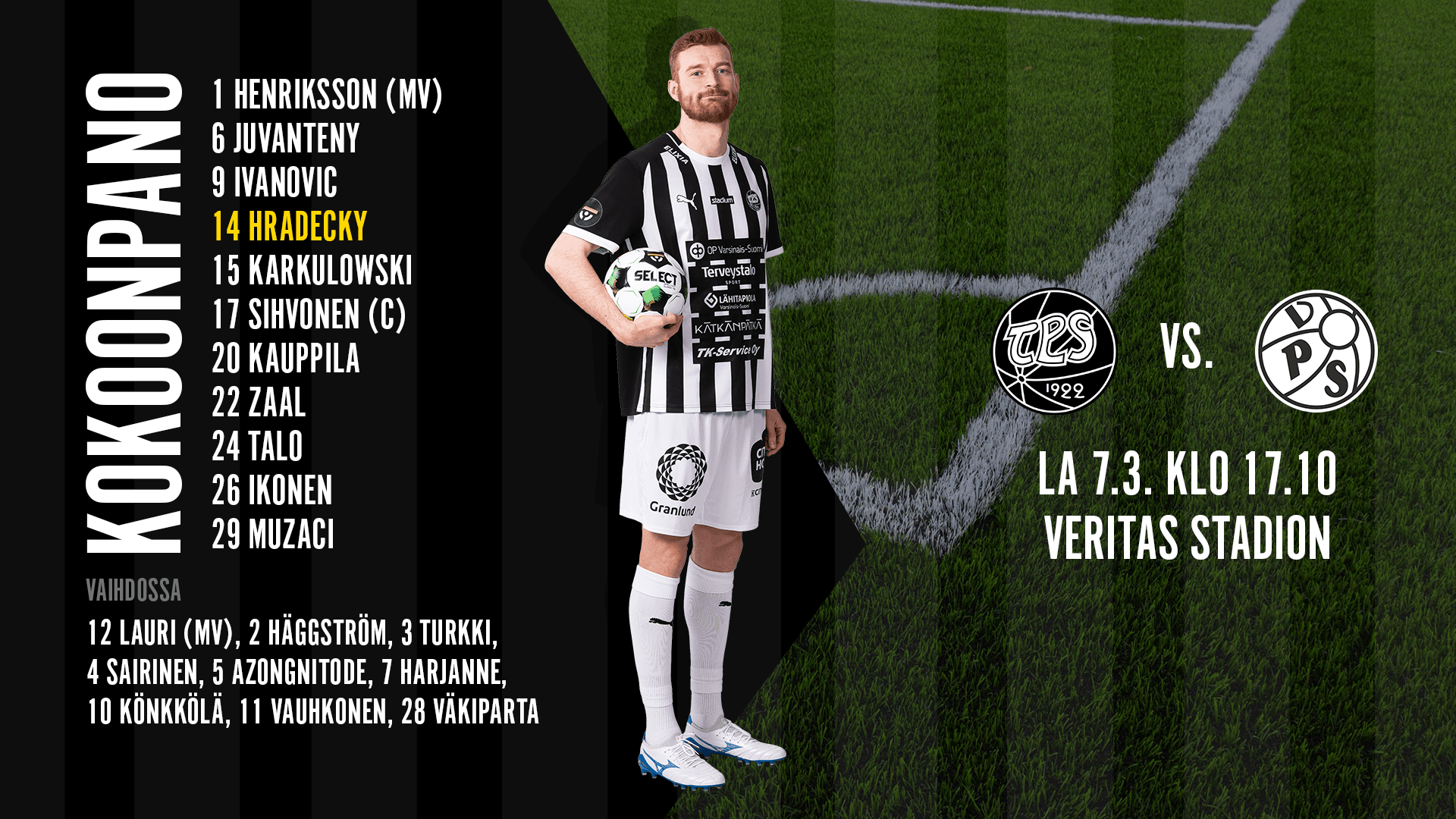 Kokoonpano harjoitusotteluun TPS–VPS la 14.3. klo 17.10
