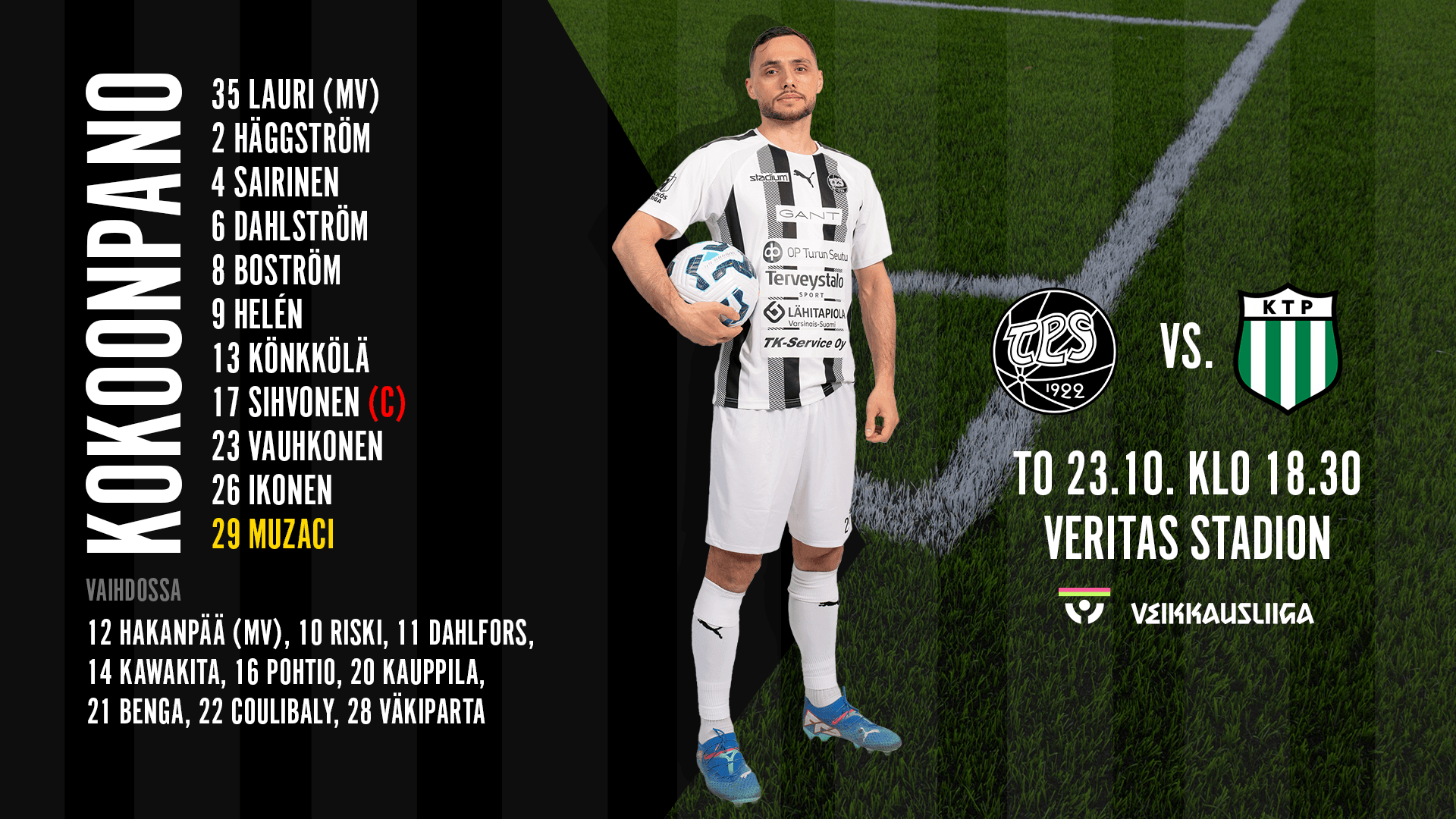 TPS:n päävalmentaja Ivan Piñol on nimennyt kokoonpanon otteluun.