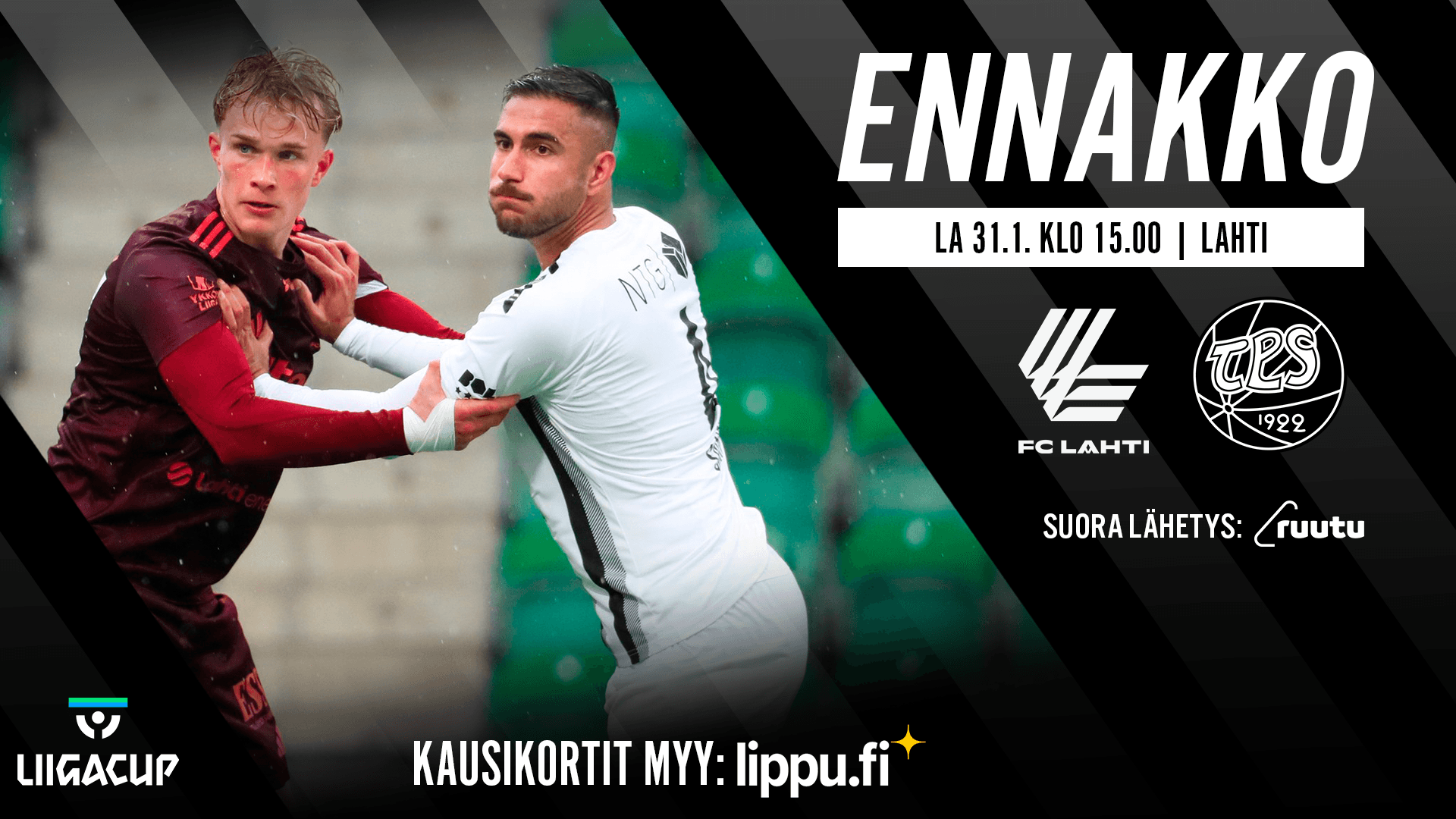 Turun Palloseura pelaa kauden 2026 ensimmäisen Liigacupin ottelunsa lauantaina 31.1. Lahdessa, kun TPS kohtaa FC Lahden. Peli alkaa Mukkulan hallissa kello 15.00. Kaikki Liigacupin ja Veikkausliigan ottelut näkyvät suorana ja selostettuina lähetyksinä Ruudun välityksellä, joten nyt on hyvä hetki tilata Ruutu tulevalle futiskaudelle.
