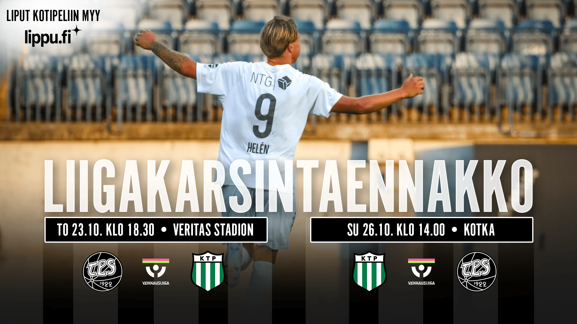Liigakarsintojen toinen osaottelu pelataan sunnuntaina 26.10. kello 14.00 Arto Tolsa Areenalla Kotkassa. TPS-kannattajat järjestää kannattajamatkan Veikkausliiga-karsintojen toiseen osaotteluun. Ruutu näyttää liigakarsintojen molemmat osaottelut suorina lähetyksinä.