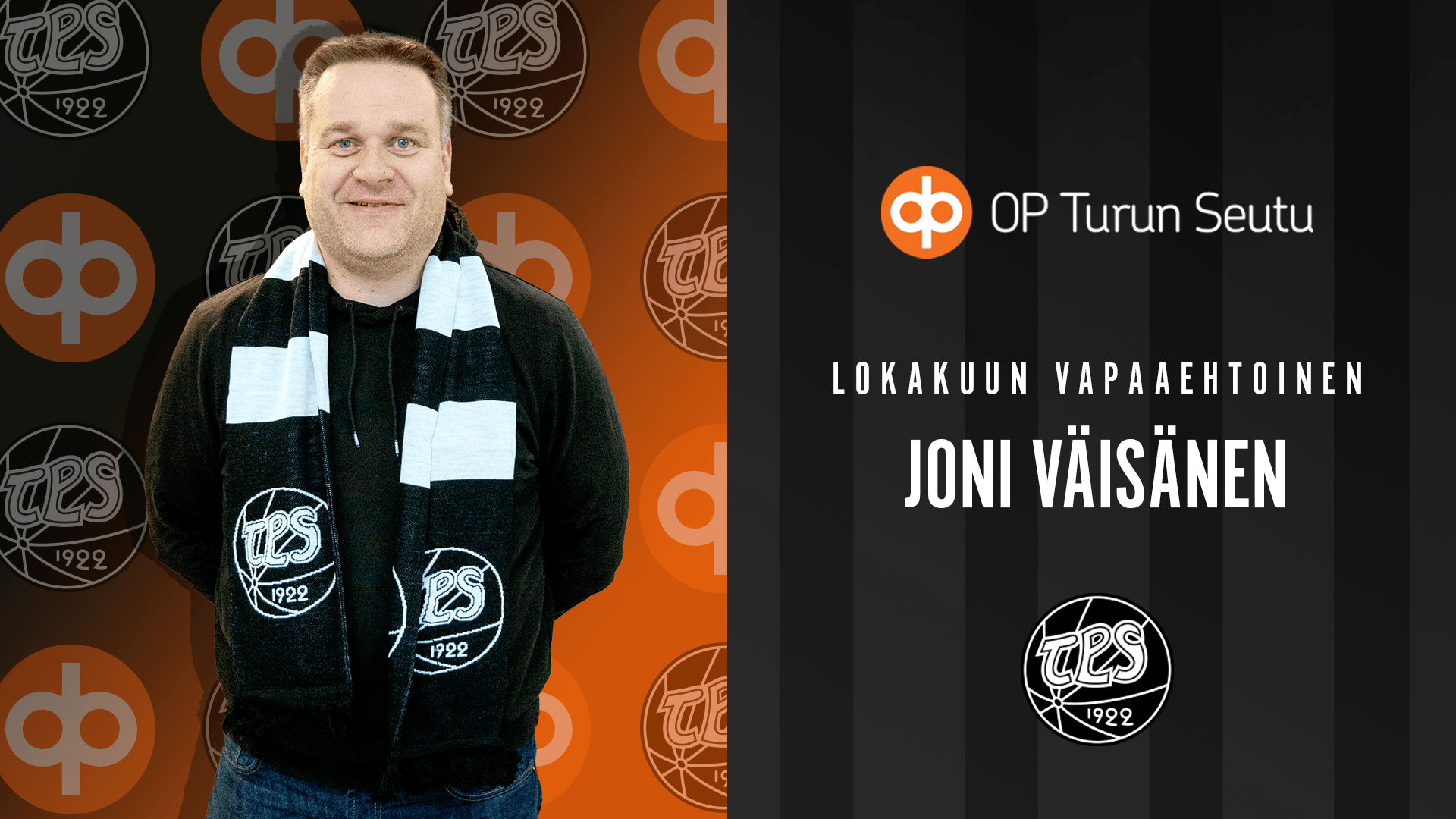 TPS Jalkapallo palkitsee yhdessä pääyhteistyökumppaninsa OP Turun Seudun kanssa joka kuukausi kuukauden vapaaehtoisen tepsiläisen. Lokakuun vapaaehtoiseksi on valittu Tepsin 2012–2013-syntyneiden tyttöjen joukkueenjohtaja Joni Väisänen.