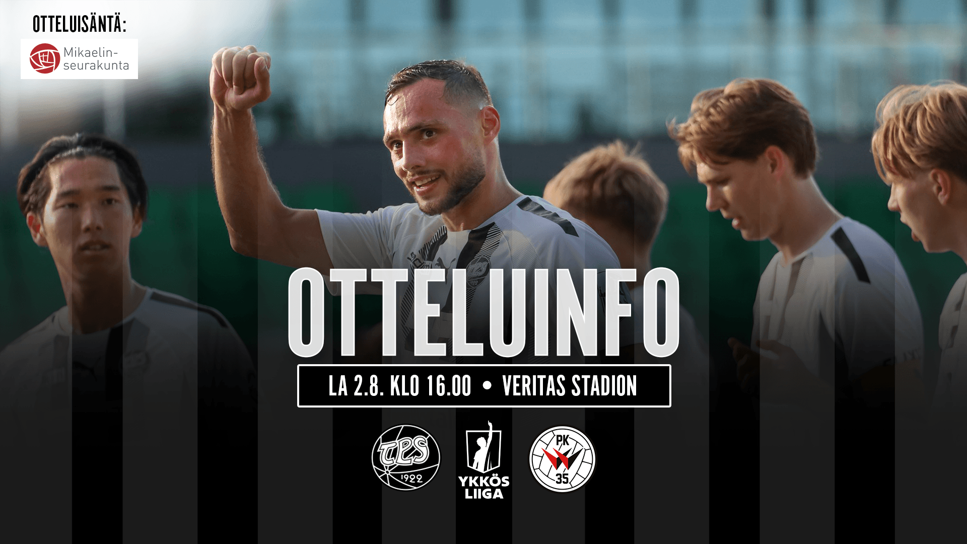 Turun Palloseura kohtaa PK-35:n Ykkösliigan kotiottelussa Veritas Stadionilla lauantaina 2.8. klo 16.00. Ottelu on osa TPS:n tuplapelipäivän tapahtumaa, sillä aiemmin samana päivänä kello 12.00 Veritas Stadionilla pelataan myös naisten Kansallisen Ykkösen ottelu TPS – FC Honka. Otteluisäntänä peleissä toimii Mikaelinseurakunta.
