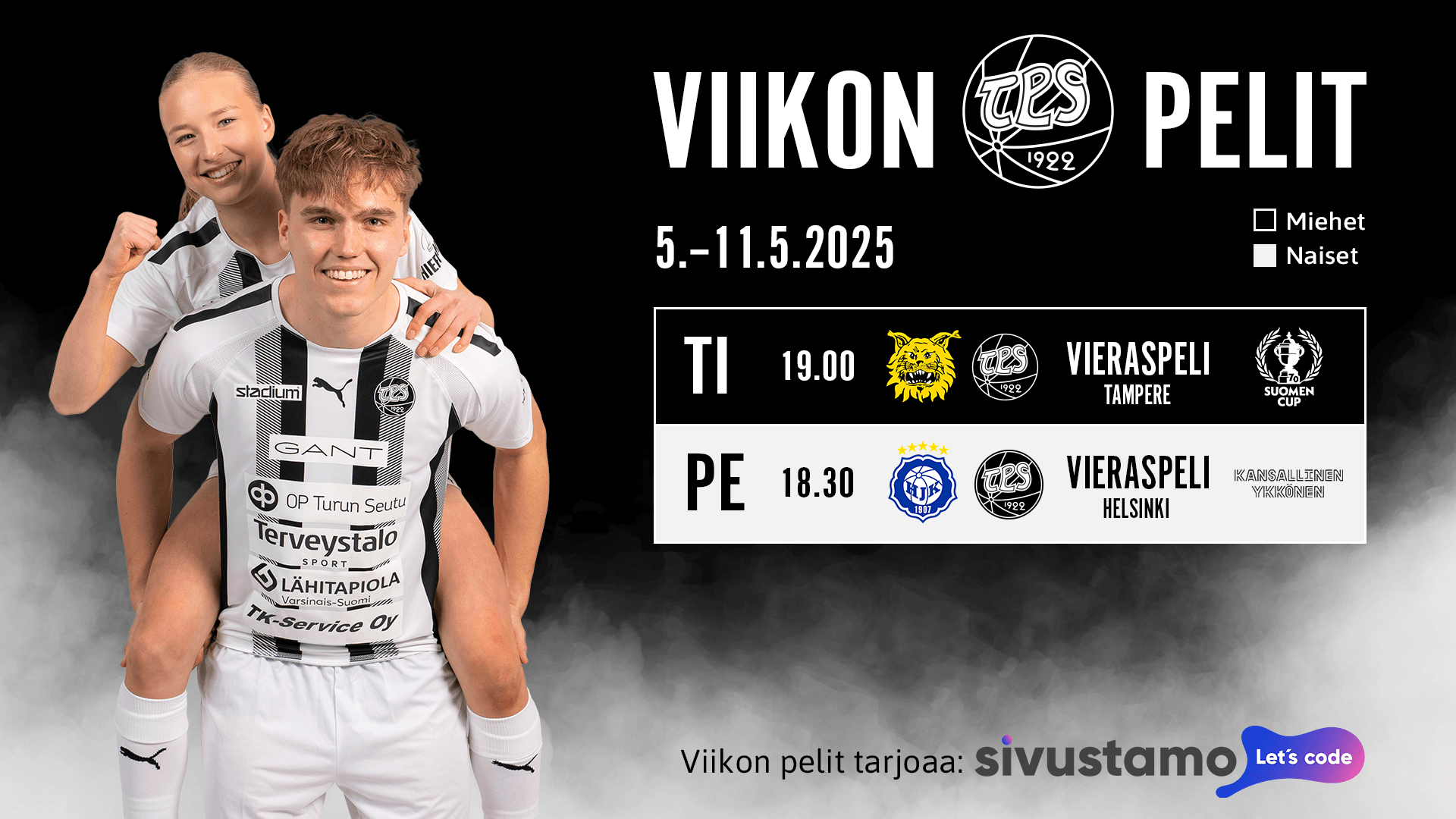 Viikon TPS-pelit tarjoaa Sivustamo. Näkyvyyttä ja tehoa verkkoon – kotisivut, ylläpito, Google-mainonta ja hakukoneoptimointi yhdestä paikasta. Sivustamo tekee diginäkyvyydestäsi helppoa ja tuloksellista.