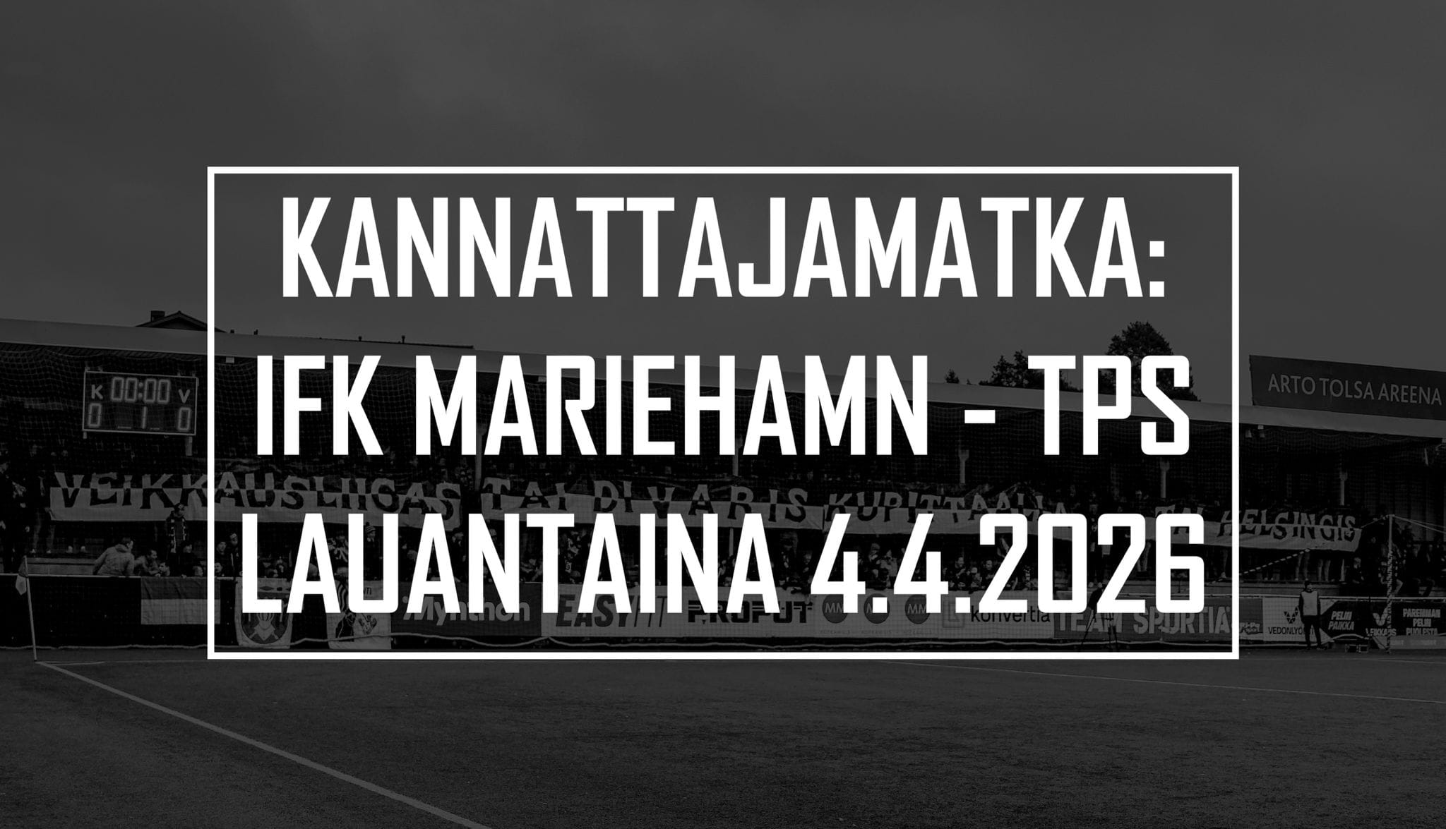TPS-kannattajat järjestää kannattajamatkan Veikkausliiga-kauden avausotteluun Maarianhaminaan. Paikkoja (ja paluumatkan hyttejä) kannattajamatkalle on alustavasti varattu 200 henkilölle. Ilmoittautuminen sulkeutuu 4.3. kello 12.00.